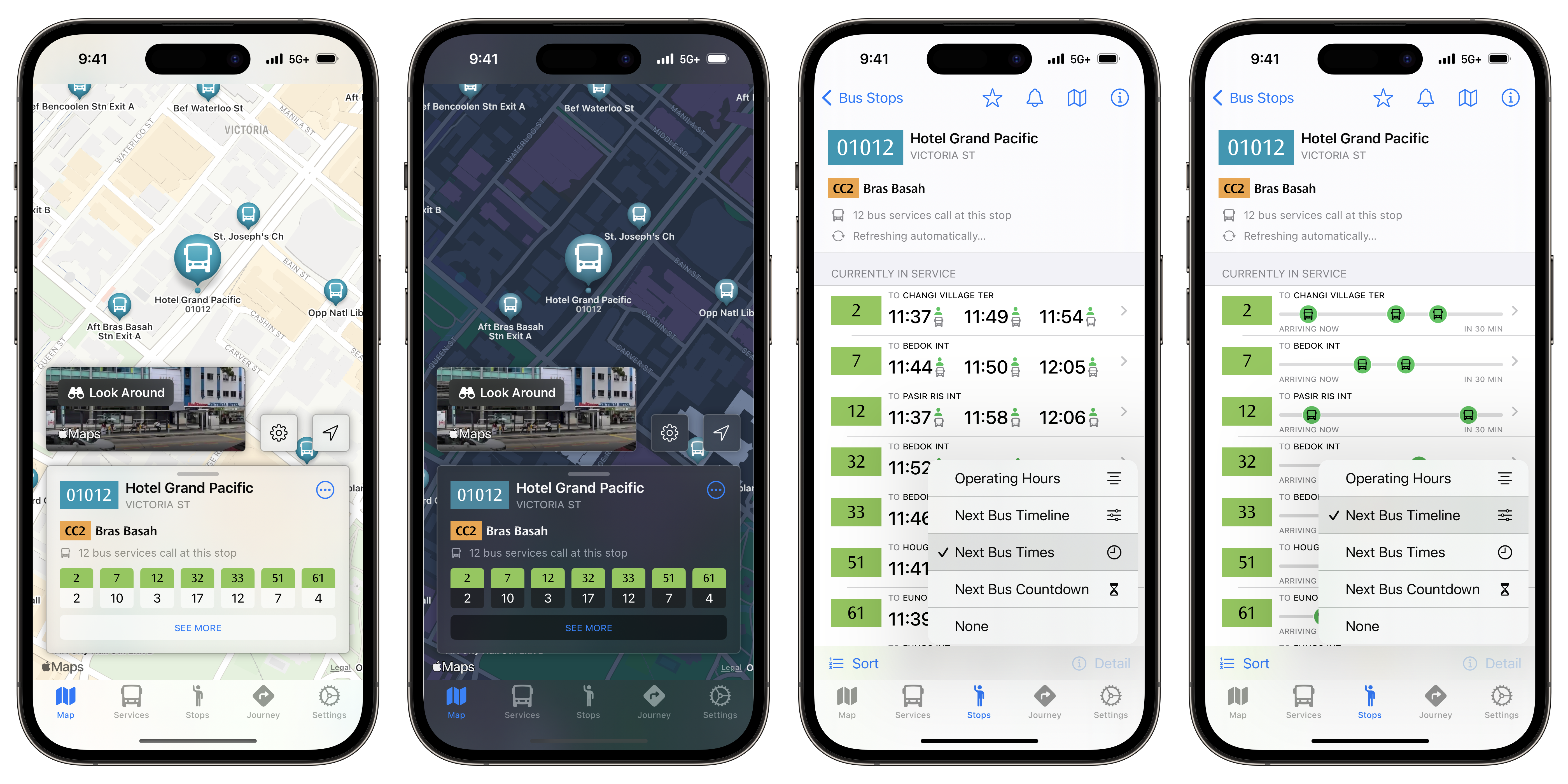 100Bus looks good in both light mode and dark mode, and can show you the bus arrival timings in different styles.