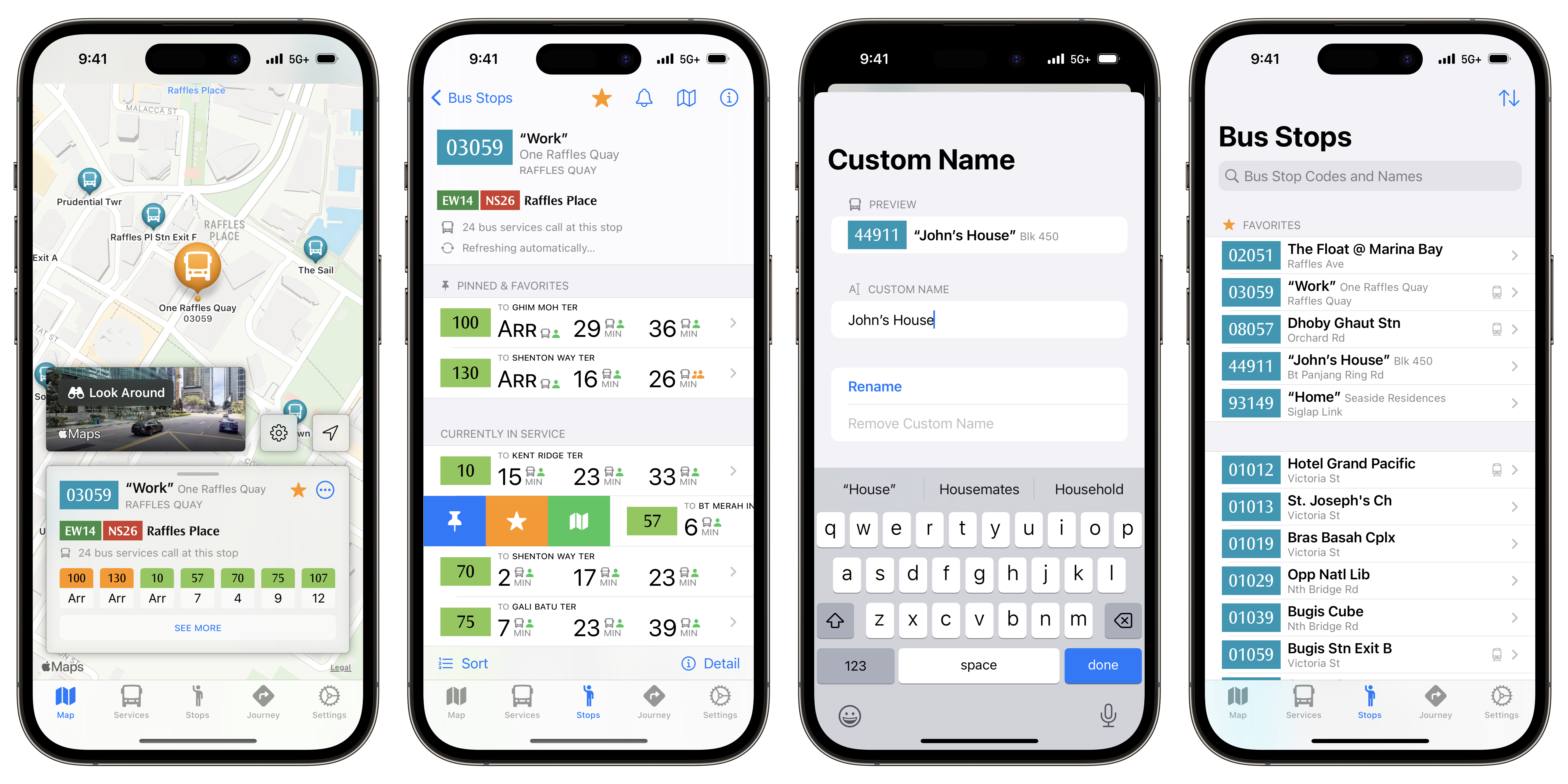 100Bus remembers your favorite bus stops and even allows you to assign them custom names that are more meaningful and memorable.